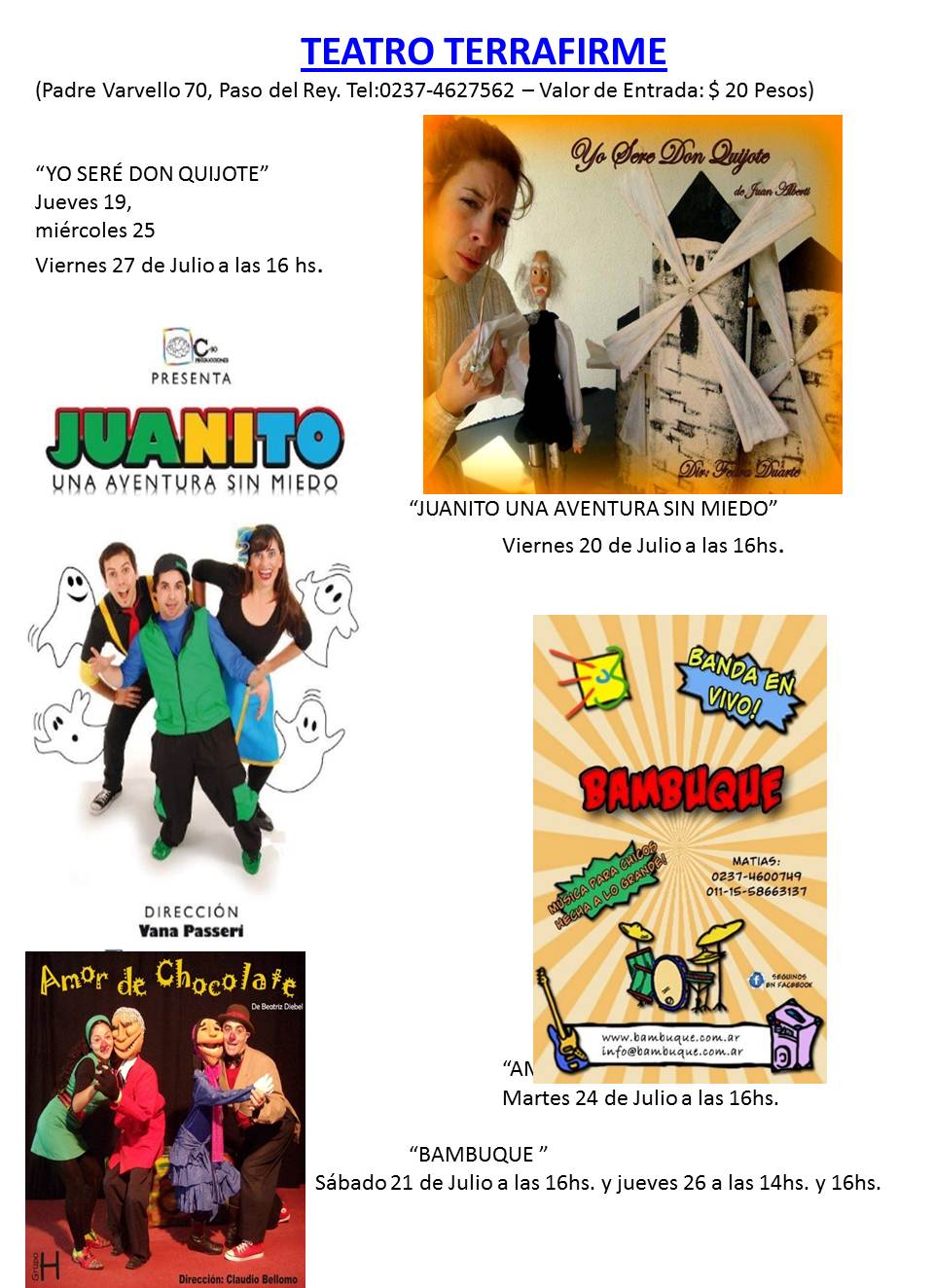Podes acercarte al teatro Terrafirme en Padre Varvello 70, Paso del Rey