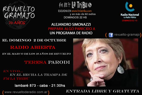 Con radio abierta y la presentación de Teresa Parodi revuelto los espera para compartir un agradable momento.