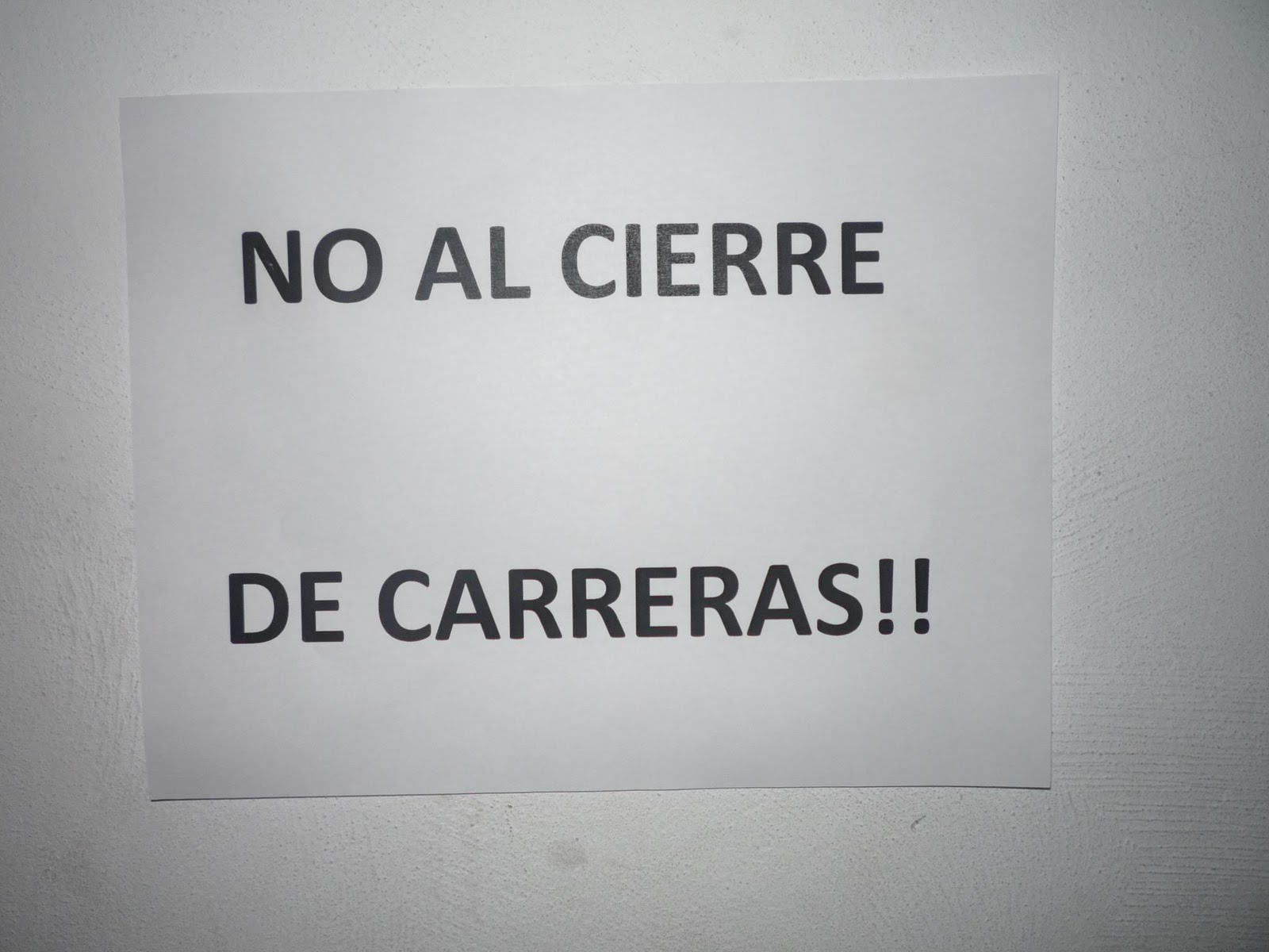 · Decimos No al cierre de carreras: por motivos que estén relacionados con las leyes de la oferta y la demandando queremos que la educación se convierta en un bien económico, sino que defendamos la postura que debe ser un derecho social. No creemos que solo por lanzar profesores al mercado laboral sino también respetar a aquellos que apuestan por un trabajo a largo placo, por un proyecto de formación. “