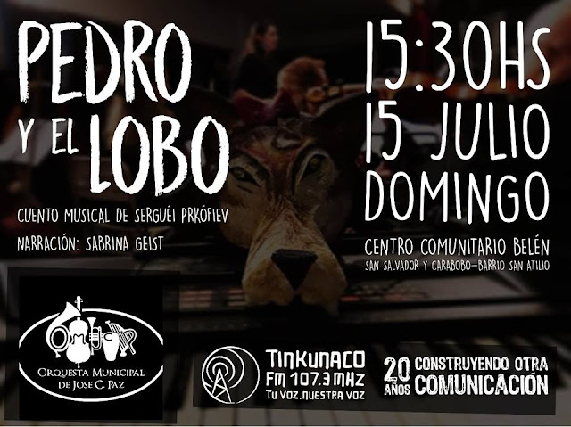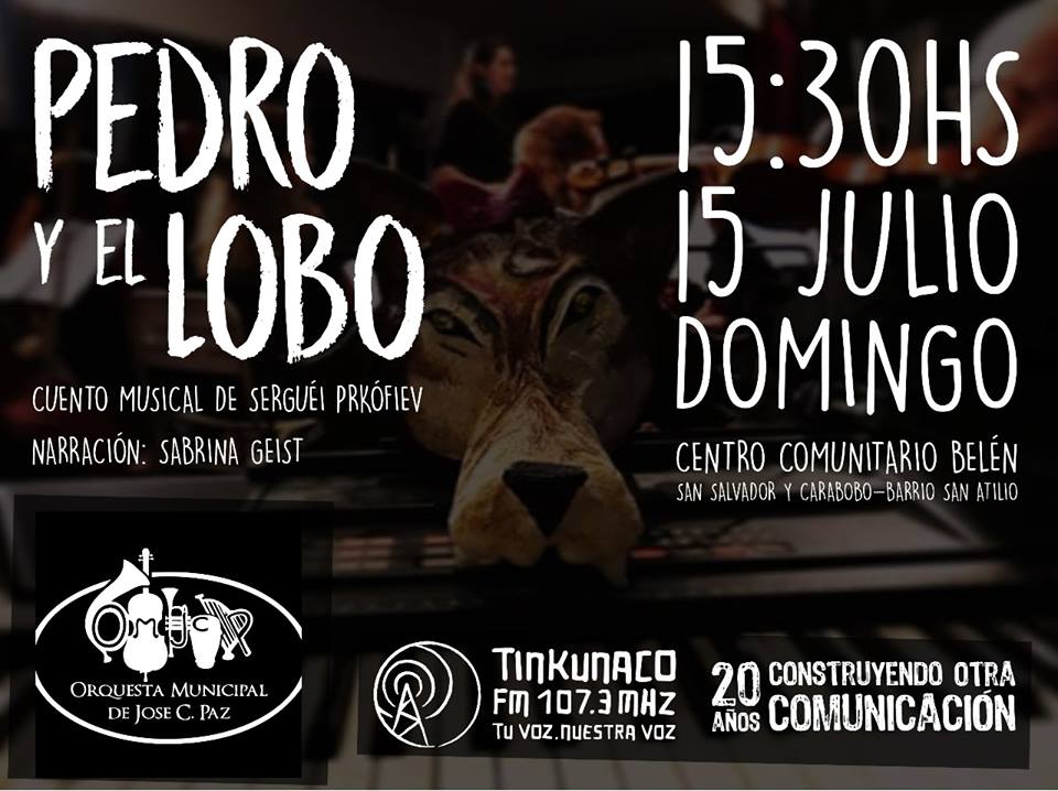 El próximo domingo 15 de julio a las 15:30hs la Orquesta Sinfónica Municipal de José C. Paz presentará en el Centro Comunitario Belén el cuento musical “Pedro y El Lobo” de Sergéi Prokófiev.