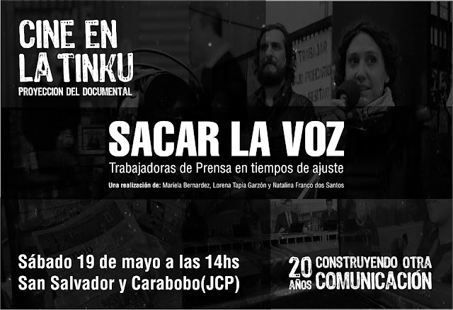 En ésta oportunidad, la radio invita a la Proyección del documental “Sacar la voz: Trabajadoras de Prensa en tiempos de ajuste”.